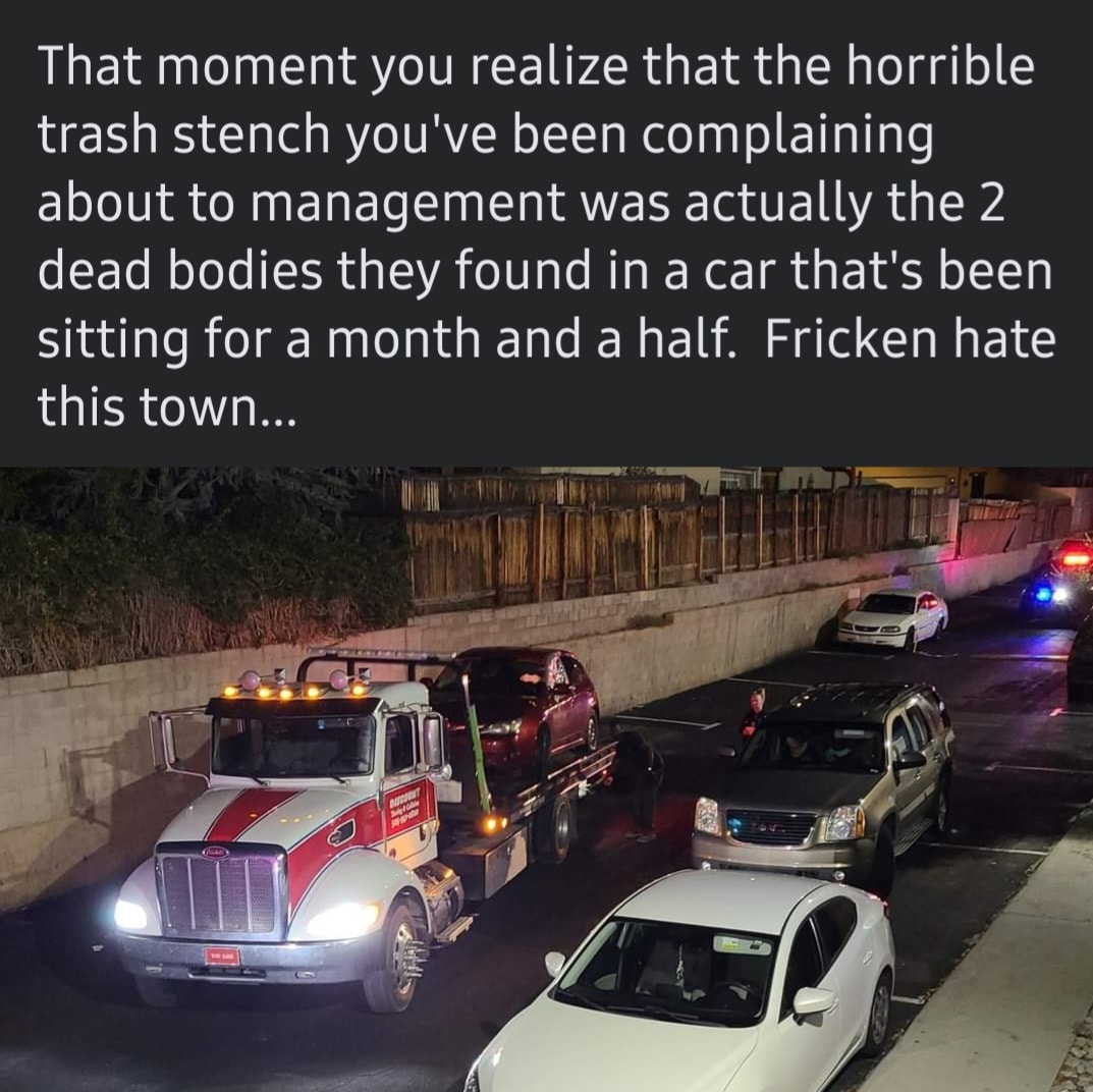 During that call Police were requested to check out a sedan vehicle in the parking lot which had been sitting there for months. Upon officers inspection of the vehicle they found what they thought was two dead bodies in the car. One body appeared to be in the front seat and the other looked to be in the back seat in the fetal position. The car windows were closed.