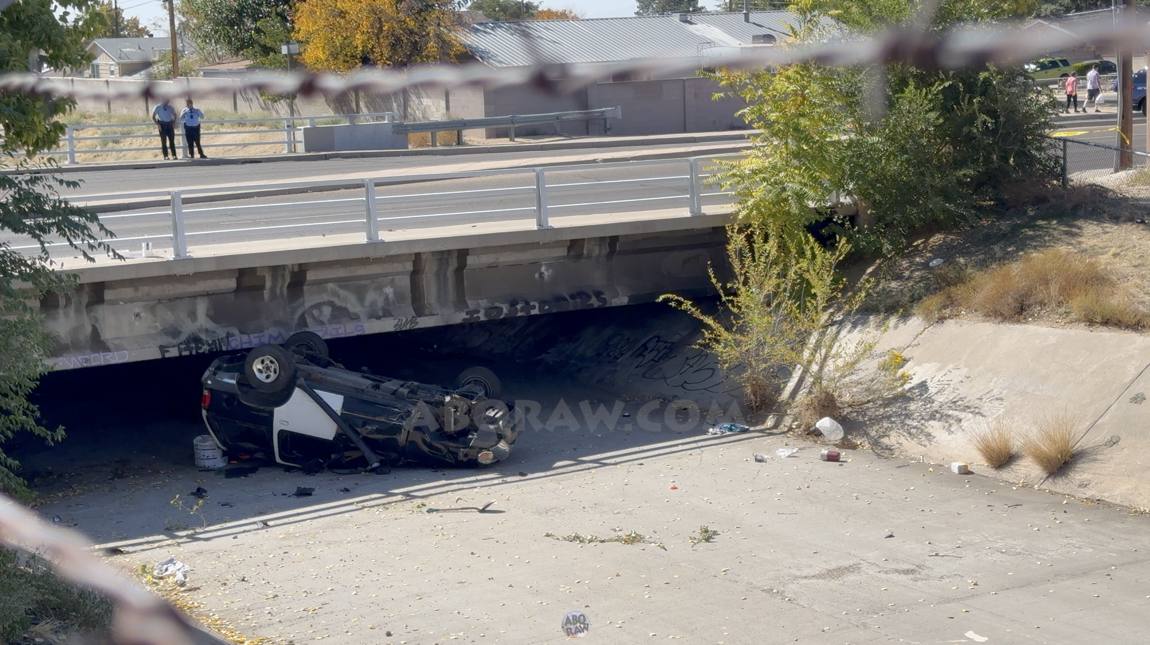 Around 11:15 AM, emergency personnel received a call about a vehicle that went into an arroyo just west of Candelaria Rd NE and Jane Pl NE. According to scanner app communications and dispatch notes on the app PulsePoint, one person in the vehicle was ejected and was unresponsive.