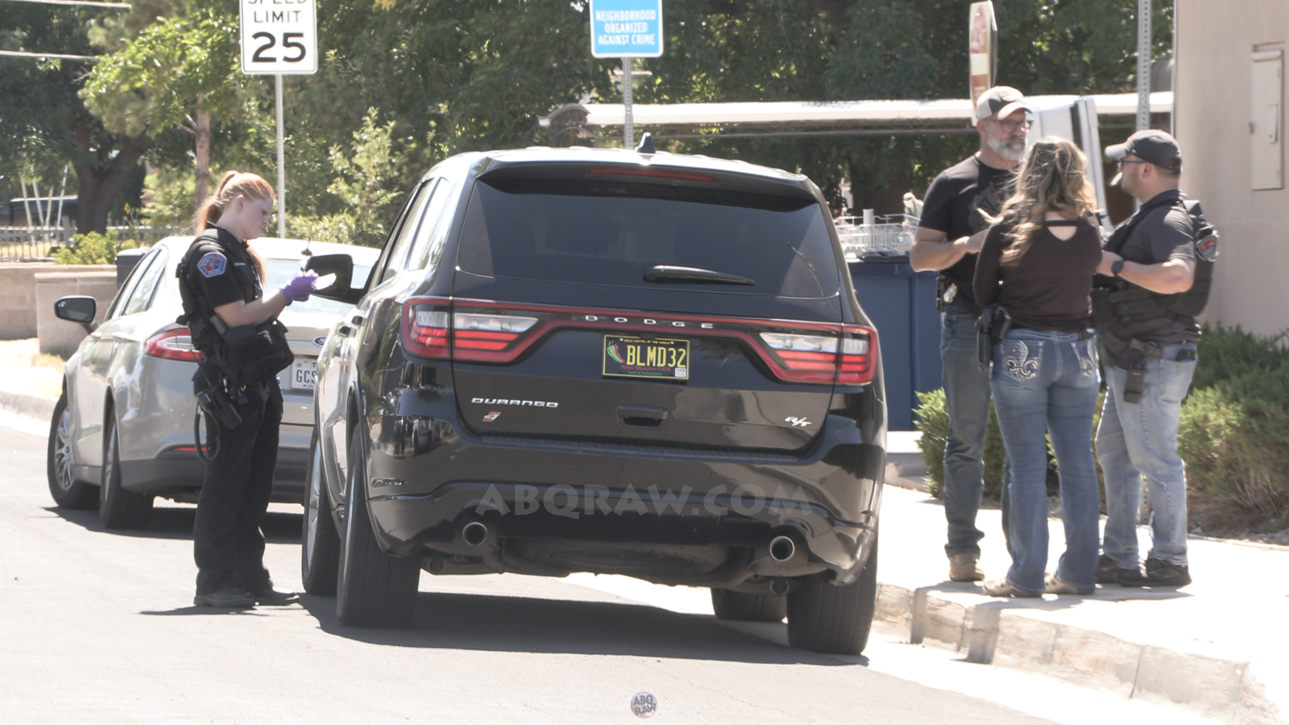 Around 1:30PM, witnesses said they saw the Albuquerque Police Department perform a high risk felony stop with at least 6-8 police units. The vehicle being stopped was a Black Dodge Durango S/T SUV. The officers could be heard giving the driver and occupants PA(public address) lous speaker commands to step out of the vehicle. The witness said they saw officers take a female into custody. ABQ RAW went on scene and saw a CSI investigator taking evidence from the SUV and looking for clues. A short time later APD homicide detectives showed up on scene.
