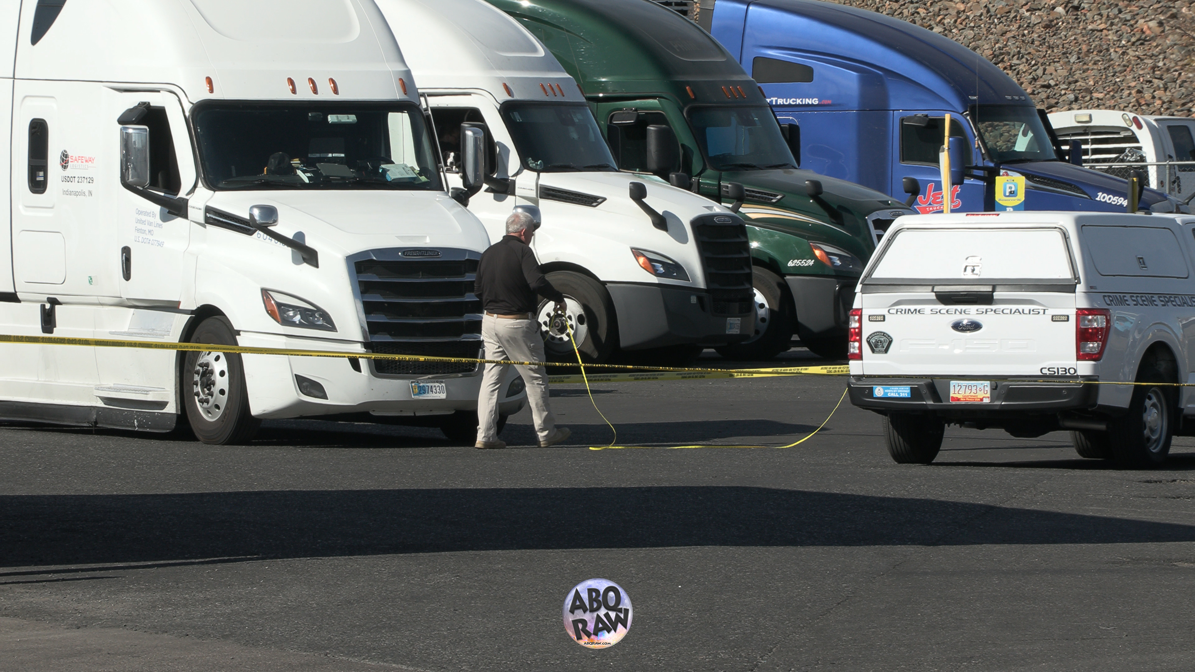 While on scene, we observed the lifeless body of a man underneath a semi-truck. The man was wearing a safety vest. We also saw officers from the New Mexico State Police on scene.