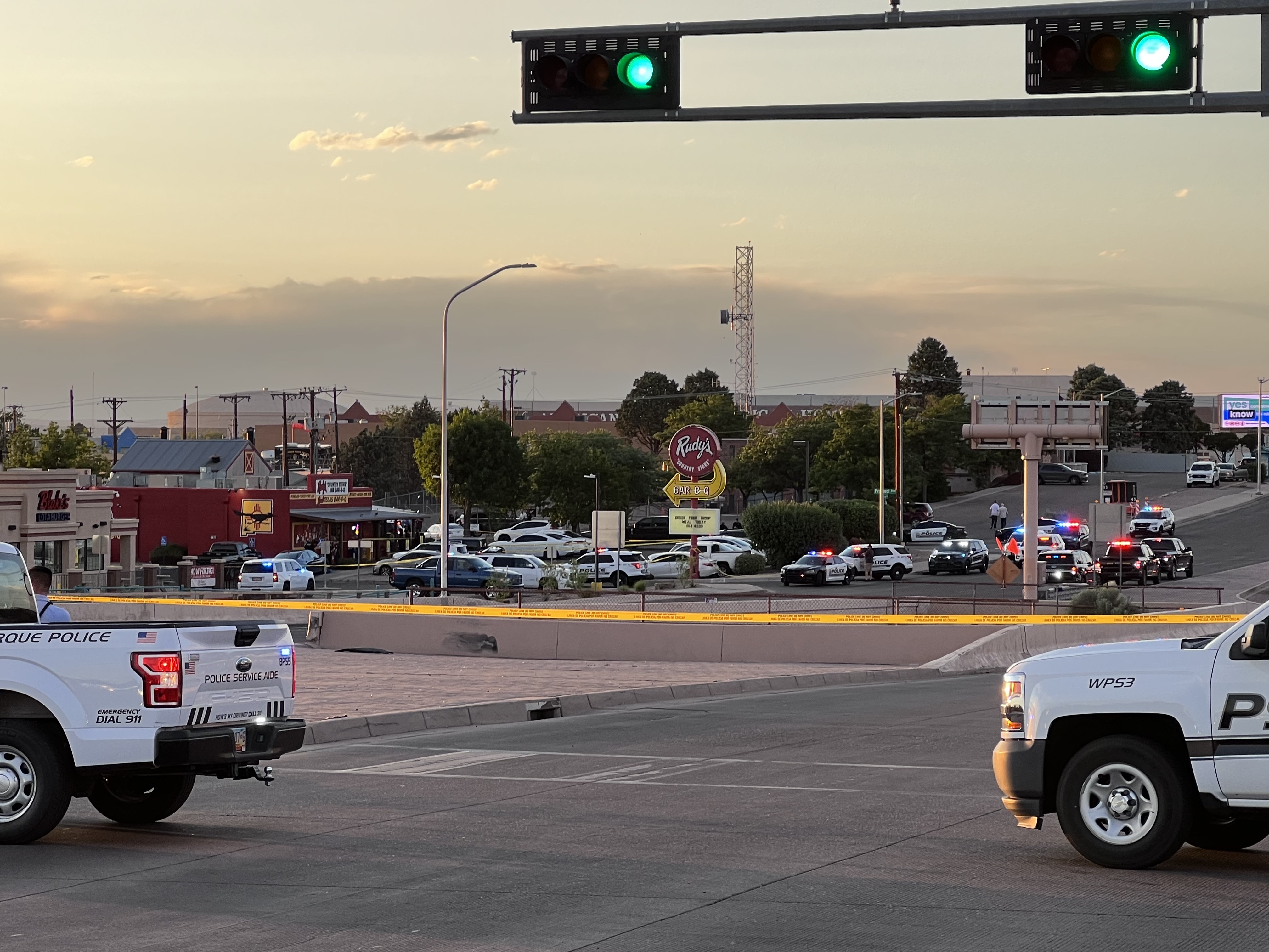 The Albuquerque Police Department and the New Mexico State Police responded to the scene. The NMSP District 5 office is next door to the BBQ restaurant.