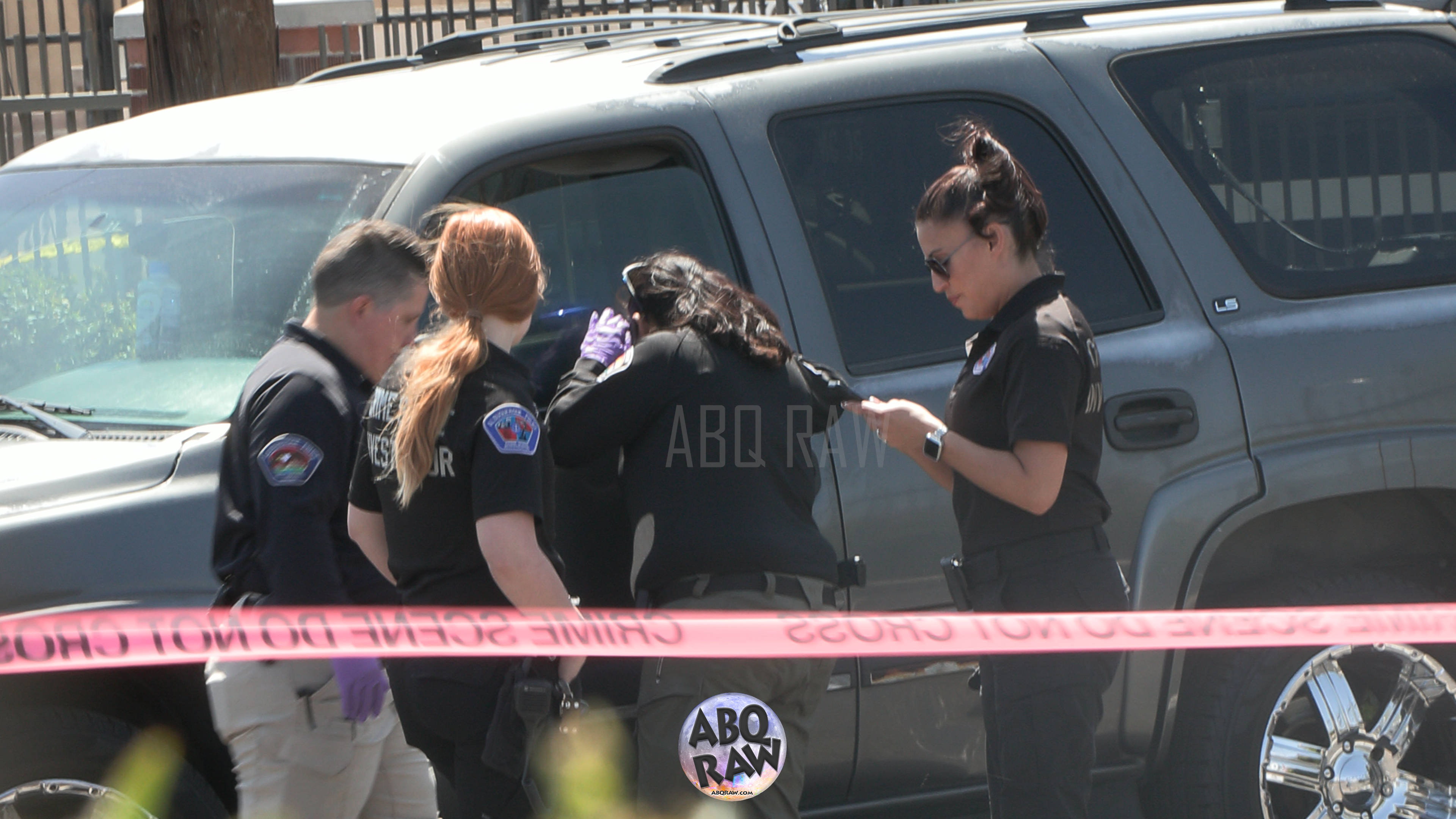 Officers and Detectives could be seen focused on a gray colored Tahoe which was backed into a spot on the far northwest corner of the apartment complex property. Blood could be seen on the exterior of the Tahoe and the rear tailgate area appeared to be shot out.