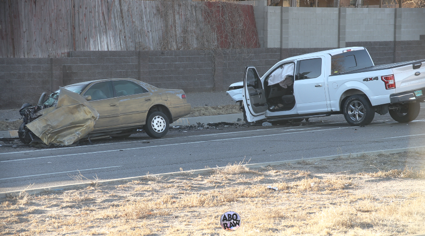 NW Albuquerque – A fatal crash happened this morning when it appears a wrong way driver in a Toyota sedan going southbound in the northbound lanes of traffic smashed into a northbound Ford F-150 on Unser Bl NW south of St Joseph NW.