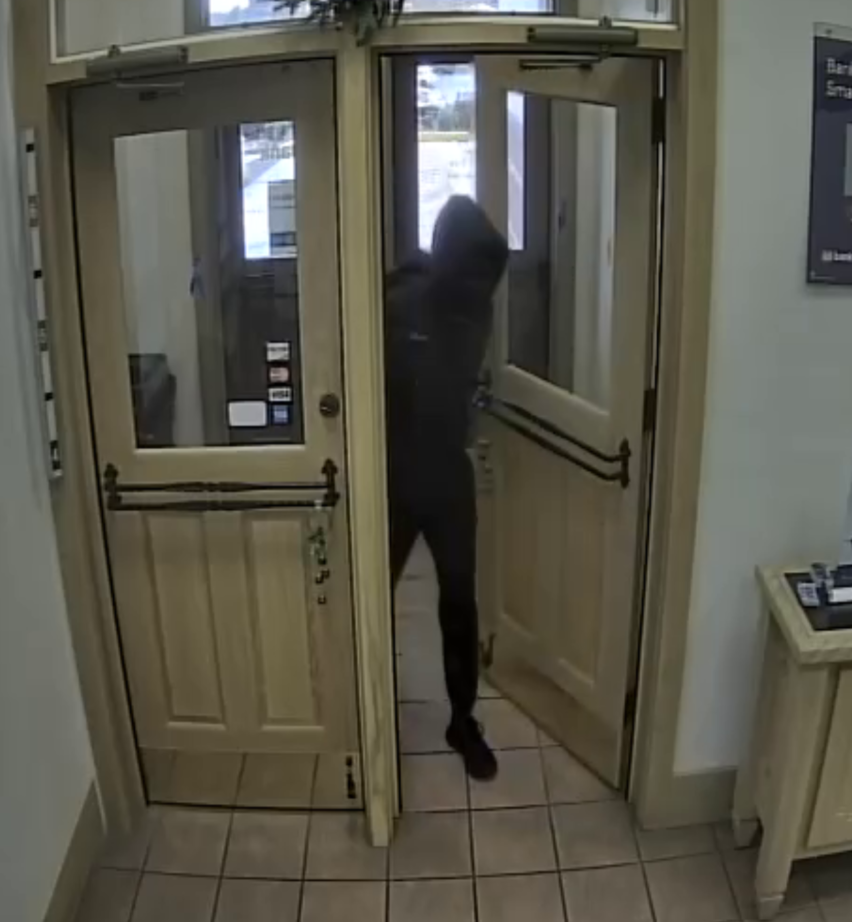 He entered the bank with a black pistol and demanded cash from a teller, who handed over an undisclosed amount of money to the robber. After exiting the bank, he was observed walking south on Golf Course. A gray SAAB is a vehicle of interest.