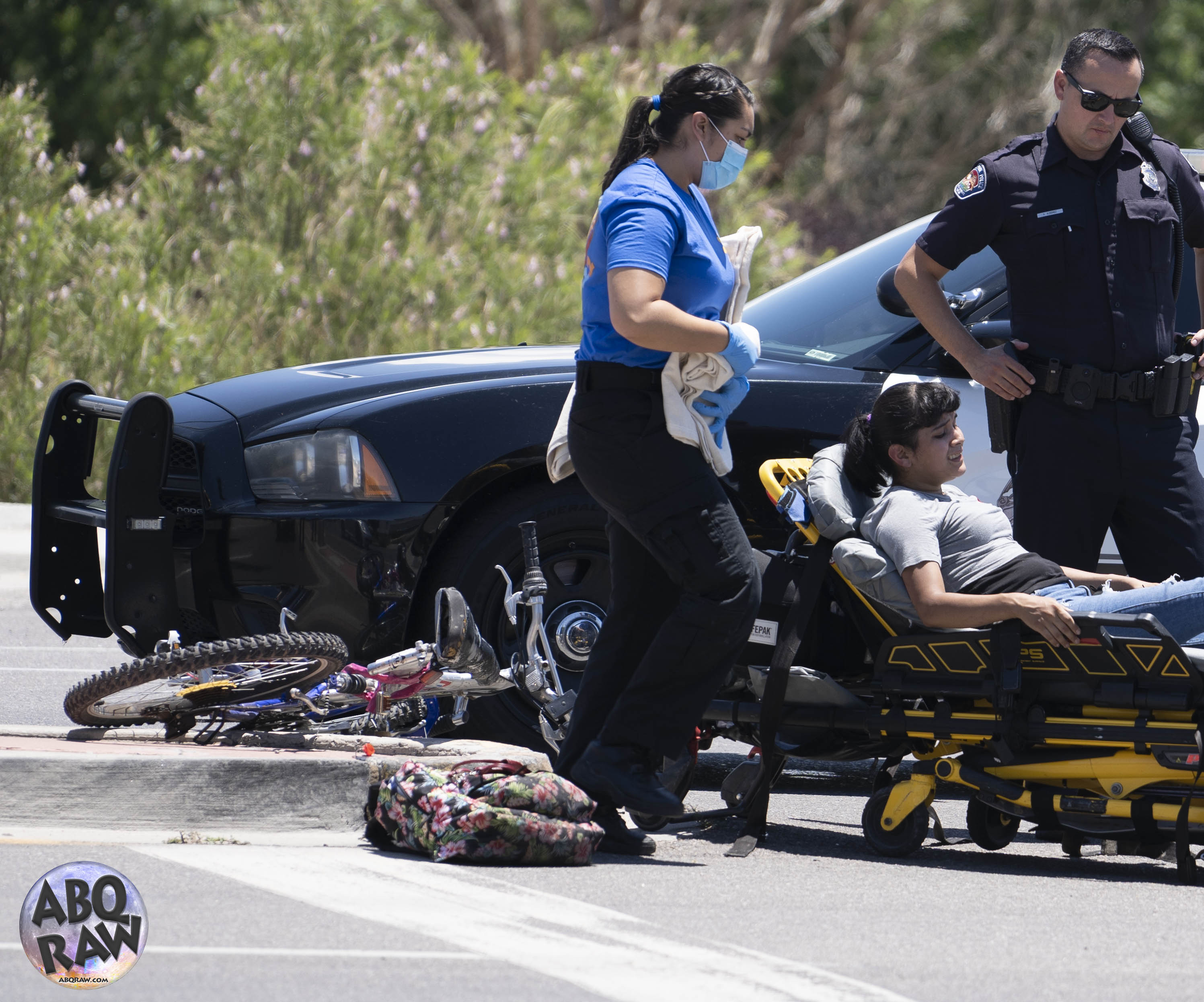 Around 12:50PM, a female cyclist was hit at the intersection of Coors and Old Airport RD NW. Police and rescue responded. The woman suffered a compound fracture on her right knee cap. It is unclear if she was crossing at the cross walk signal or was walking across the intersection.