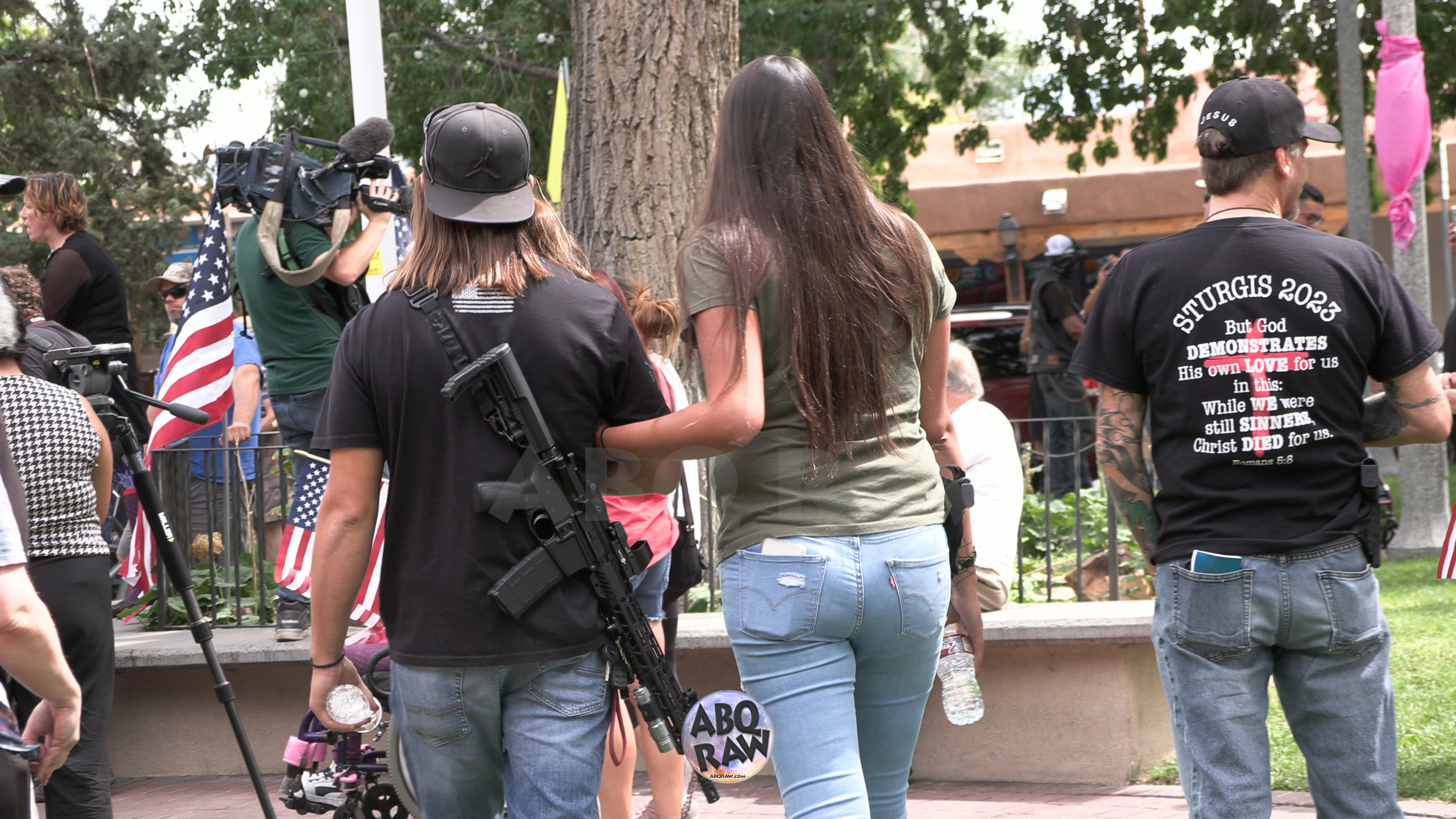 On Sunday September 10th, 2023, Old Town Albuquerque became the epicenter of a heated gun control debate. Gun rights advocates gathered in old town plaza to protest Governor Michelle Lujan Grisham’s recent executive order temporarily banning firearms open carry and concealed carry in all of Bernalillo County. The rally, organized by local pro-Second Amendment groups, saw hundreds of participants converging on the historic district to voice their concerns and push back against the controversial measure.