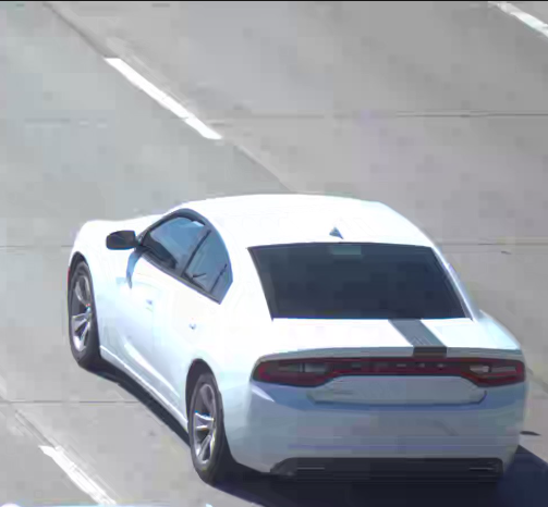 ALBUQUERQUE, NM – APD Detectives are asking for assistance from the public to locate this White Dodge Charger. It did not have a license plate during the time this photo was taken. The vehicle has a very distinct black racing stripe only on the trunk. This vehicle was involved in a homicide that occurred in downtown Albuquerque on May 29, 2023.