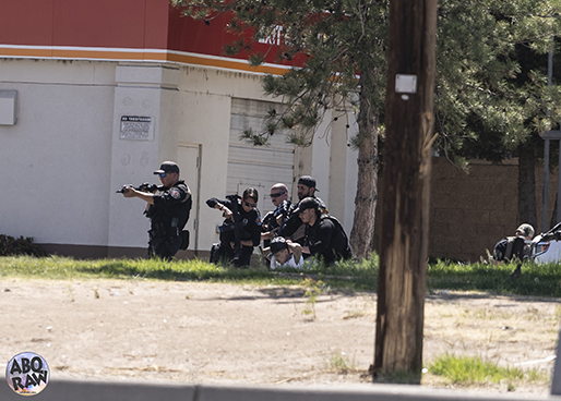 Around 1:30pm, Albuquerque Police Department were in pursuit of a suspect vehicle. There was a crash with a vehicle and two suspects fled into the Circle K.