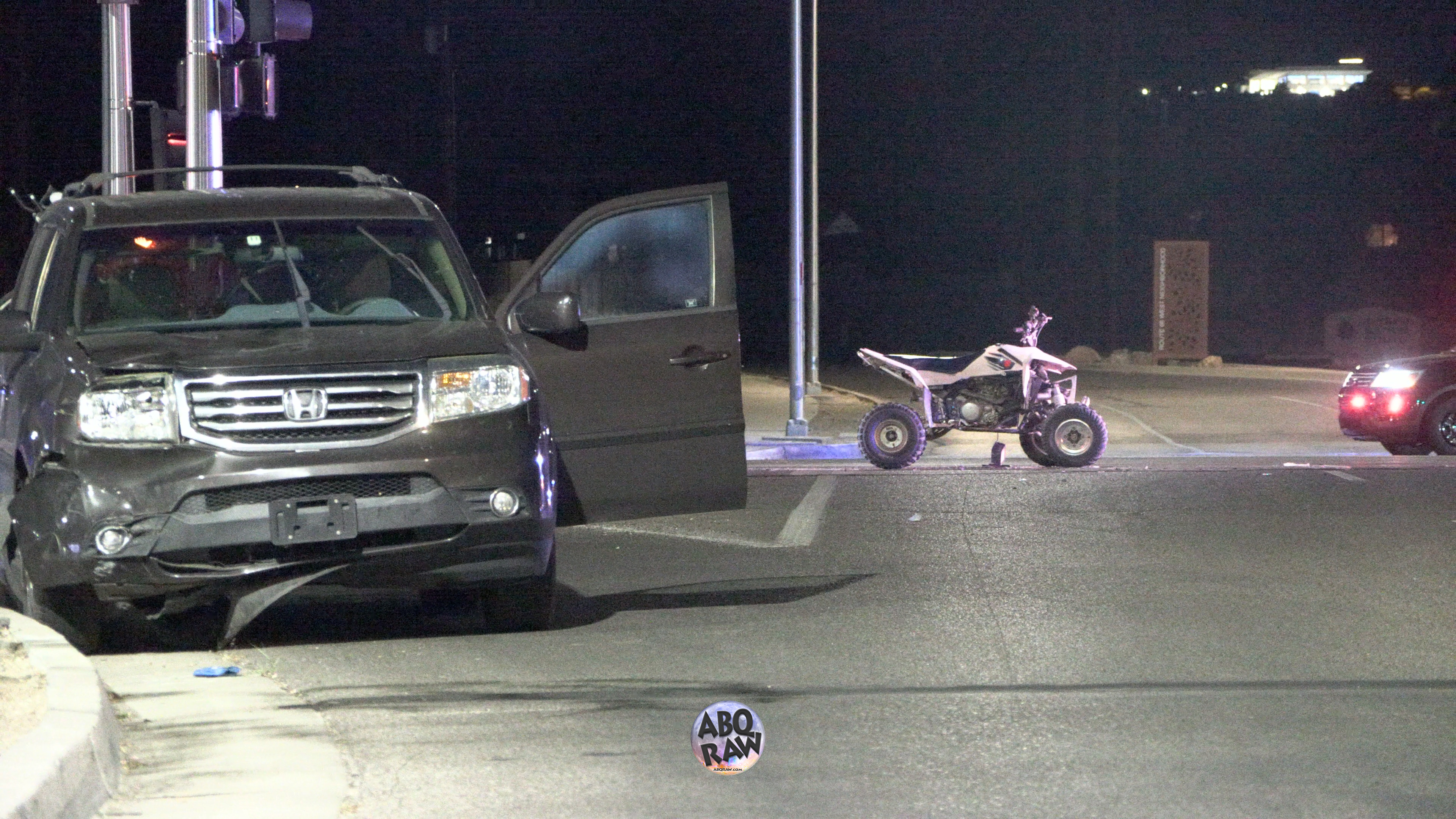 On June 22,2023, at approximately 11:00 p.m., the Albuquerque Police Department Motors Unit was called out to the intersection of 98th St and Tower Rd SW, to investigate a serious injury crash. This Involved an ATV and a SUV.